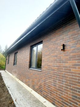 В продаже участок с жилым домом, общей площадью 140 кв.м (10х14 м), 2024 года постройки, из газобетона D400, газоблок 375 мм, снаружи облицован клинкерным кирпичом (дом подходит для круглогодичного проживания, теплый, изолированный от шума), фундамент - монолитная железобетонная плита 300 мм, крыша металлочерепица.