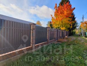 Забор на ленточном фундаменте, кирпичная кладка, столбы из кирпича, секции из штакетника, откатные ворота, парковка из брусчатки, отмостка из брусчатки, забор и дом имеют фасадную подсветку.