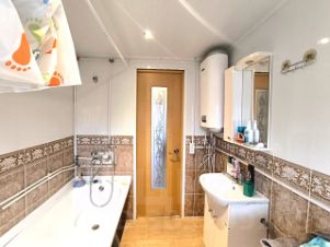 На первом этаже дома расположена кухня - гостиная 24 кв.м., 2 - спальные комнаты 16 кв.м и 12 кв. м., ванная комната. Мансардный этаж 2 комнаты с косметическим ремонтом и 1 комната гостиная пред чистовая отделка.