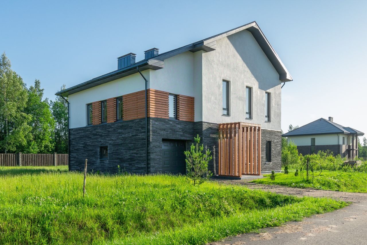 Продается стильный кирпичный двухэтажный коттедж 228.5 кв.м. в коттеджном посёлке бизнес-класса Новая Романовка в 3 минутах от Всеволожска.