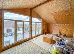 На первом этаже вас ждет просторная кухня-гостиная площадью 36 кв. м, где можно собираться с семьей и друзьями. Также здесь расположена спальня (9 кв. м), удобный санузел (6 кв. м) и тамбур (5 кв. м). Обратите внимание на теплые полы, которые создадут уют и комфорт в холодное время года. С первого этажа есть три выхода, что добавляет удобства и функциональности.