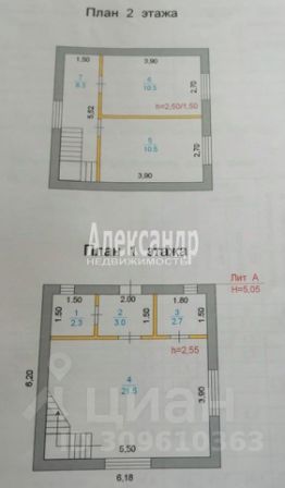 2 этаж: 1 комната 10,5кв.м, 2 комната 10,5 кв.м, коридор 8,3кв.м.