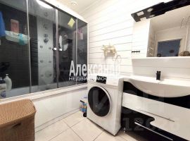 -санузел, в котором установлена и душевая кабина и стиральная машина,