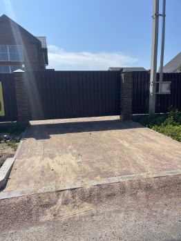 *Сделан забор, установлена калитка и раздвижные ворота.