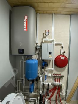 Водяной теплый пол сделан по всему первому этажу, за счет этого весь дом очень теплый, даже в сильные морозы.