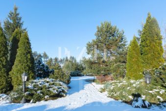 Участок 21 сот. с хвойными деревьями, рядом прогулочная дорожка на аллею с резной деревянной аркой и в декоративный пруд с рыбками.