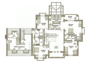 Проектом дома на первом этаже предусмотрены большая гостиная, кухня, столовая с выходом в зимний сад . Так же на первом этаже может располагаться кабинет или гостевая. Слева от центрального входа можно обустроить СПА зону с сауной или хаммамом.