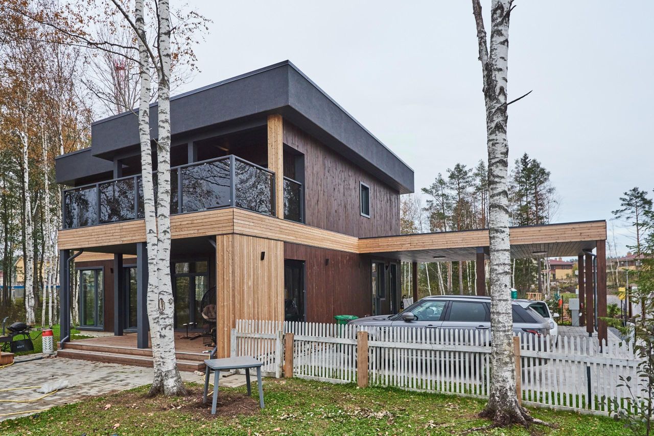 Стильный дом площадью 273 м2, где все метры рассчитаны на разумное использование. Продуманная планировка позволит комфортно проживать большой семье. Вы по достоинству оцените выход на террасу (23 м2) и просторную кухню-гостиную (ее площадь составляет более 50 м2). Кроме того, в доме есть 4 спальни с панорамными окнами.