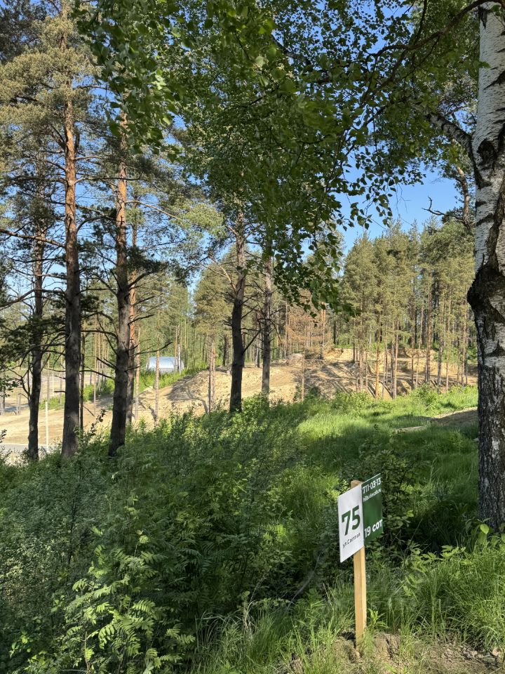 Участок имеет уникальную форму — амфитеатра. На территории растут вековые сосны. Рельеф участков идеально подходит под реализацию эксклюзивного проекта вашего дома. Подведено электроснабжение, газ по границе участка, участок находится в окружении соснового леса, на территории поселка проложены асфальтированные дороги.
