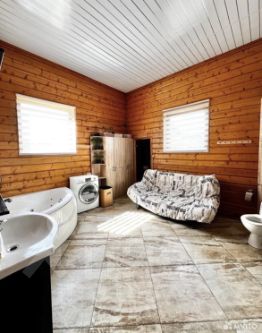 Теплый пол в кухне-гостиной и ванной комнате, отопление котлом на литров, канализация септик. Все коммуникации. Газ по границе участка+ газ заведен в котельную.