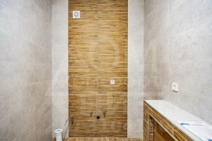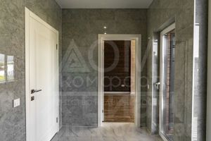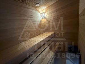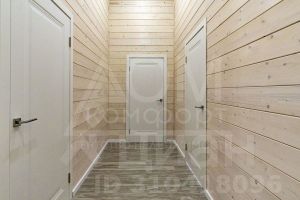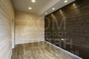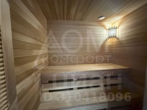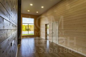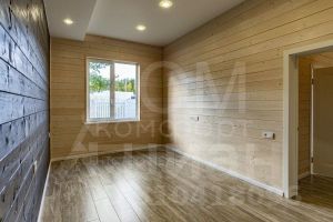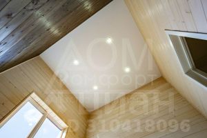 Внутри натяжные потолки со светодиодной подсветкой, теплый пол во всех комнатах с датчиками температуры, отделка стен - имитация бруса, полы - плитка, отделка сауны бессучковая лиственница , полки из абаша.