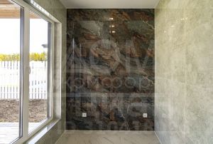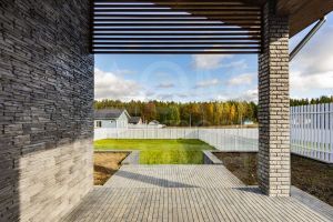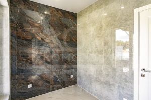 Фундамент монолитная плита, стены - монолитный полистеролбетон, с превосходной тепло и шумоизоляцией выполненный в соответствии с ГОСТ 33929-2016, внешняя отделка - лиственница, искусственный камень и клинкерная плитка, крыша - мягкая черепица.