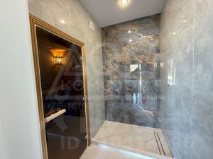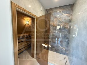 Сауна с душевой, комнатой отдыха и выходом на террасу.