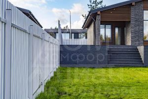 Вся территория огорожена забором с откатными воротами и калиткой.