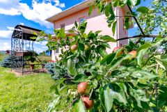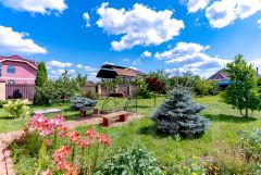 • Высажены плодовые садовые кусты яблони ранние и поздние, груши, смородина, жимолость, крыжовник. Декоративные голубые ели и клен, розы, лилии.
