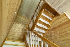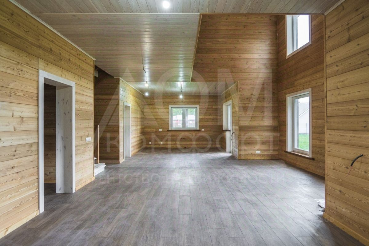 Снаружи дом зашит сухой строганной с использованием плит МДВП Балтермо и покрашен Тиккуриллой, при монтаже использовались качественные мембраны ветрогидрозащиты и пароизоляции. Внутри дома стены и потолок зашиты имитацией бруса из лиственницы шириной 210 мм и покрыты маслом Тиккурилла.