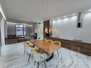 Кирпично- монолитный коттедж поразит Вас своим качеством исполнения, потолки под 4м, просторная зона кухни гостиной 65 м2 с большим угловым камином, обрамленым мрамором, кухней из ценных пород ореха и техникой марок siemens и liebherr, обеденный стол из ореха 2300х1100 (к слову). Выделенная зона домашнего кинотеатра с профессиональным лазерным проектором 4к и размером картинки 120' с эффектом 3d и цветовым наполнением пространства!!! Смотреть любимый фильм Вы будете на модульном диване, который имеет 11 вариаций раскладки (к слову, прекрасно подойдет для любых саамых запредельных утех). Лестница украшена бело- голубым мрамором, все это в сочетании с многочисленными зонами света, подсветки отдельных элементов, зеркал и стекла- создают уникальный шарм и игру солнечных лучей... 4 спальни с прекрасными видами на зеленые зоны, гардеробные комнаты, сан узлы на каждом этаже, сауна, немецкая сантехника Lavinia boho, раковины из сорта "медового" (о боже, как же это все сладко) мрамора. Двери высотой 2.7 м. из массива дуба с остеклением с фацетом (для тех кому нравится классика). В ремонте использованы исключительно натуральные материалы: дерево ценных пород, орех, каповый карагач, мрамор, керамика, стекло и тп. Полностью гиппоаллергенно!