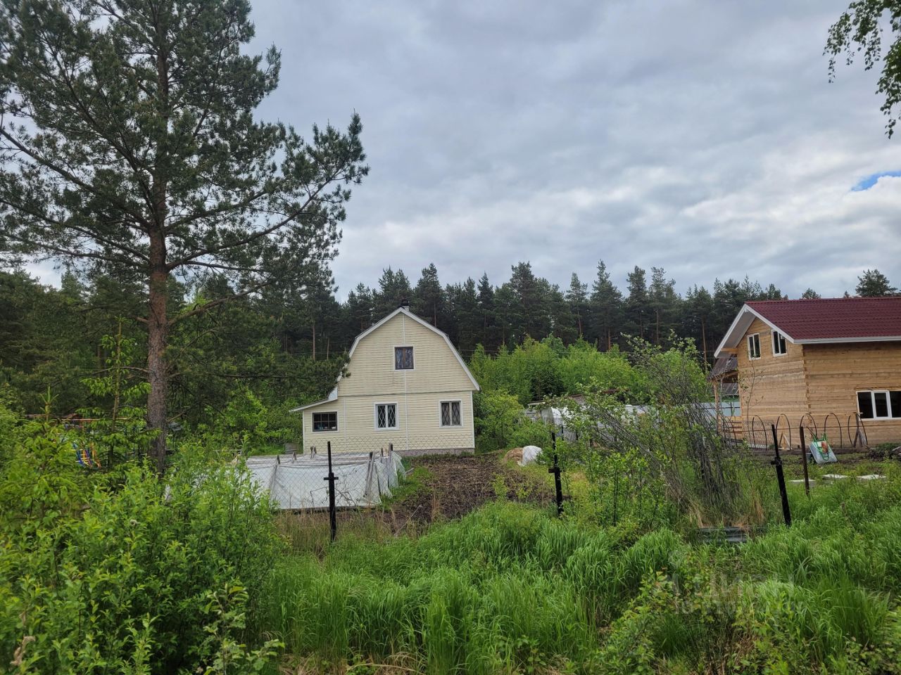 Высокий, ровный участок в уютном СНТ "Корела" в на окраине г. Приозерска. На участке залит монолитный фундамент-плита размером 68 кв.метров. На фундамент установлена бытовка 63,5.
