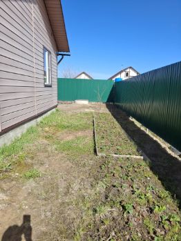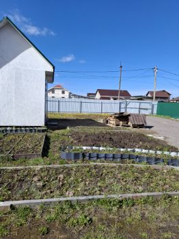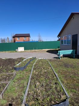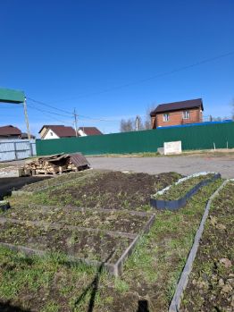 Участок ровный, огорожен забором. На участке посажены грядки с клубникой, есть малина, яблони, слива, крыжовник, смородина, цветы.
