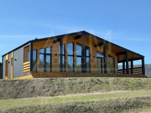 Общая площадь дома - 150 кв.м., жилая - 105 кв.м. Три спальни, кухня- гостиная, два с/узла, сауна, холл, тех. помещение и просторная терраса.