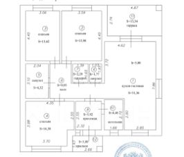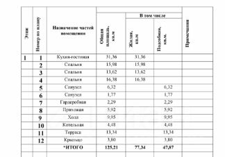 Три спальни, большая гостиная - кухня с выходом на террасу, 2 сан. узла, гардеробная, котельная, холл.