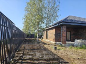 -установлен забор, откатные ворота (автоматические на пульте), калитка