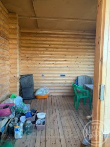 На участке построена бревенчатая баня с хозяйственными помещениями, установлен био- туалет. Приобретена, но не установлена печь HARVIA, которая останется новым владельцам участка.