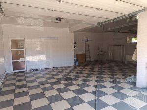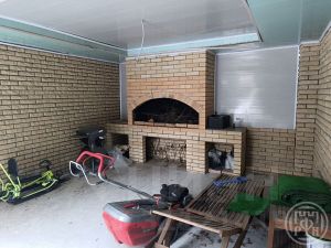 Автоматические ворота , забор из кирпича по всему периметру участка.