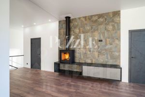 Кухня-гостиная 63 метра, с островом, укомплектована всей необходимой техникой (газовая плита, духовка, микроволновка, холодильник). Современный дровяной камин в минималистическом стиле, находится центре комнаты ,что позволяет обыграть пространство для комфортного расположения всех членов семьи и их гостей.