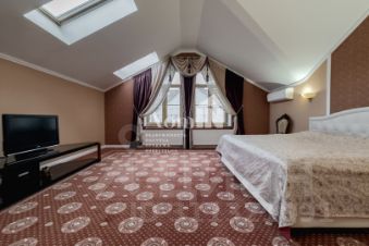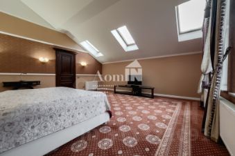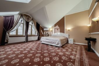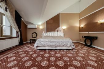 На втором этаже: просторный кабинет с экером и окнами в пол, с большой спальней, состоящей из двух комнат, с сан.узлом и выходом на мансардное помещение и небольшую лоджию.