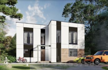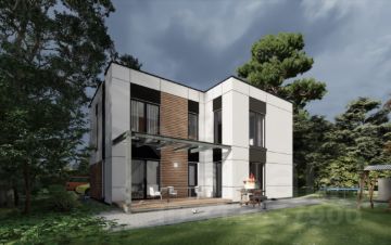 О ДОМЕ: FP-5 двухэтажный дом с тремя спальнями , гардеробной, технической комнатой и санузлом. Кухня-гостиная с панорамным остеклением. Участок чуть больше 10 соток.
