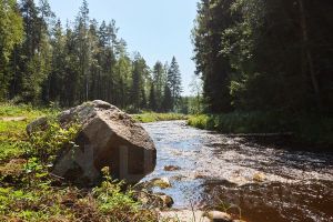 Оберег находится в самом красивом месте пос. Ленинское, есть и сосновый лес и красивые перепады высот и речка.