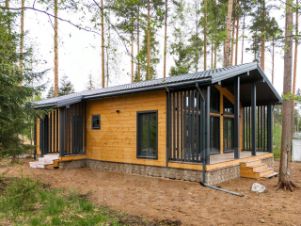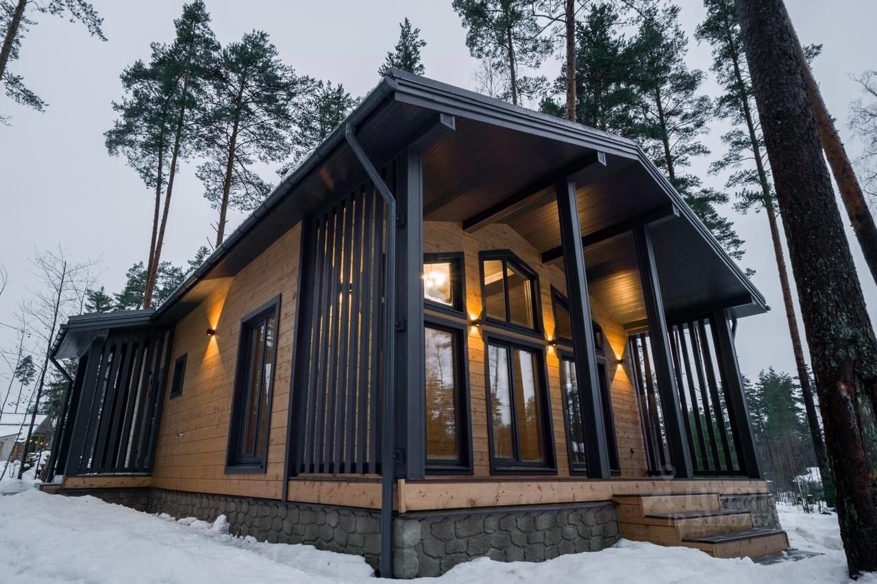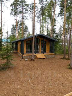 3 изолированные комнаты, С/У, просторный тамбур , котельная. Толщина стен 250 мм, фундамент винтовые сваи усиленные, отопление электрокотёл, везде уложен водяной теплый пол (система наполнена антифризом) и залита полусухая стяжка (практически фундамент - монолитная плита). Панорамные окна профиль Vеkа 72 мм, энергоэффективные двухкамерные стеклопакеты. Отделка фасада: имитация бруса 21х196, карельский профиль, окрашен в заводских условиях краской Тиккурила. Фасадная подсветка светильники итальянского производства.