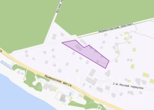 Участок площадью 9 877 м2 расположен в посёлке Репино Курортного района Санкт-Петербурга на Приморском шоссе.