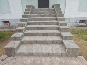 Первый этаж: Кухня 18 кв. м, раздельный санузел; сауна, гостиная около 30 кв. м. с лестницей на второй этаж, а так же спальня на 18 кв. м. На первом этаже расположены две печи.