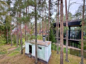 Все необходимые коммуникации уже подведены - газовый котел в отдельном здании, водопровод - скважина, электричество, интернет оптоволокно и канализация (септик).