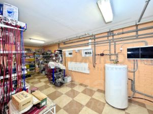 В доме имеется цокольный этаж, который можно использовать для хранения вещей. Одно из помещений отведено под мастерскую. На цокольном этаже размещена зона для стирки: стиральная и сушильная машины Miele и большая морозильная камера. По метражу цоколь повторяет метраж первого этажа.