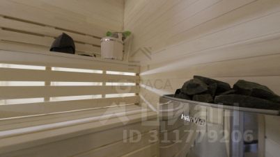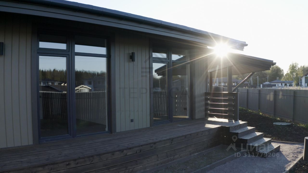 Большая крытая терраса, прихожая, гардеробная, удобная кухня, оборудованная техникой, гостиная с дровяным камином, 4 изолированные комнаты с панорамными окнами и выходом на террасу, 2 с\у с подвесной мебелью, сауна с печью HARVIA + тропический душ с терморегулировкой и ведро для обливания холодной водой, постирочная, котельная.