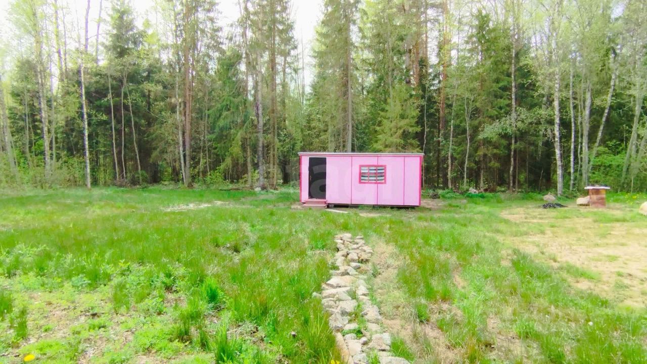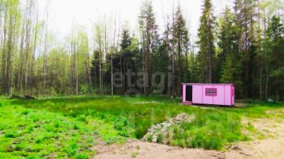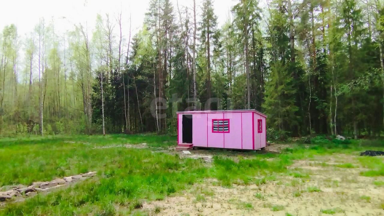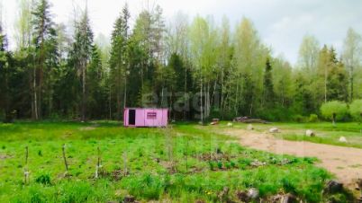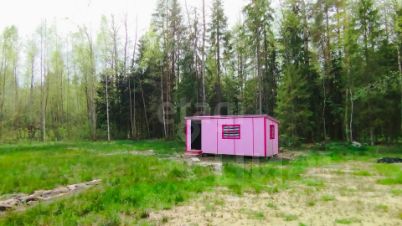На участке стоит новая бытовка, в которой можно расположить необходимый инструмент и оборудовать на первое время место отдыха.