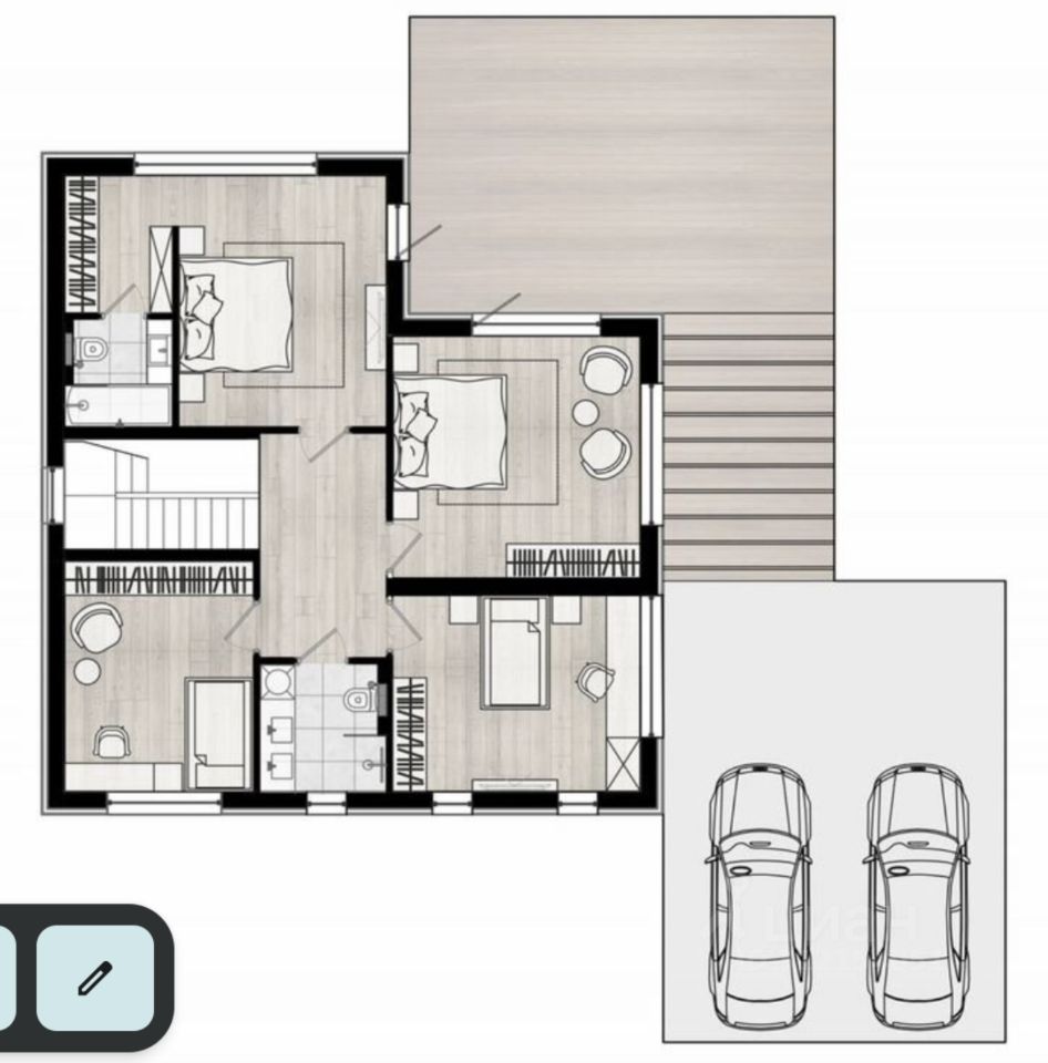 Площадь дома 196кв.м, а теплого контура 210кв.м + Крытая терраса 25кв.м (можно застеклить и присоединить к дому) + крытый навес для машин 50кв.м (можно зашить и сделать гараж) + две открытые террасы на втором этаже 30 и 50кв.м.