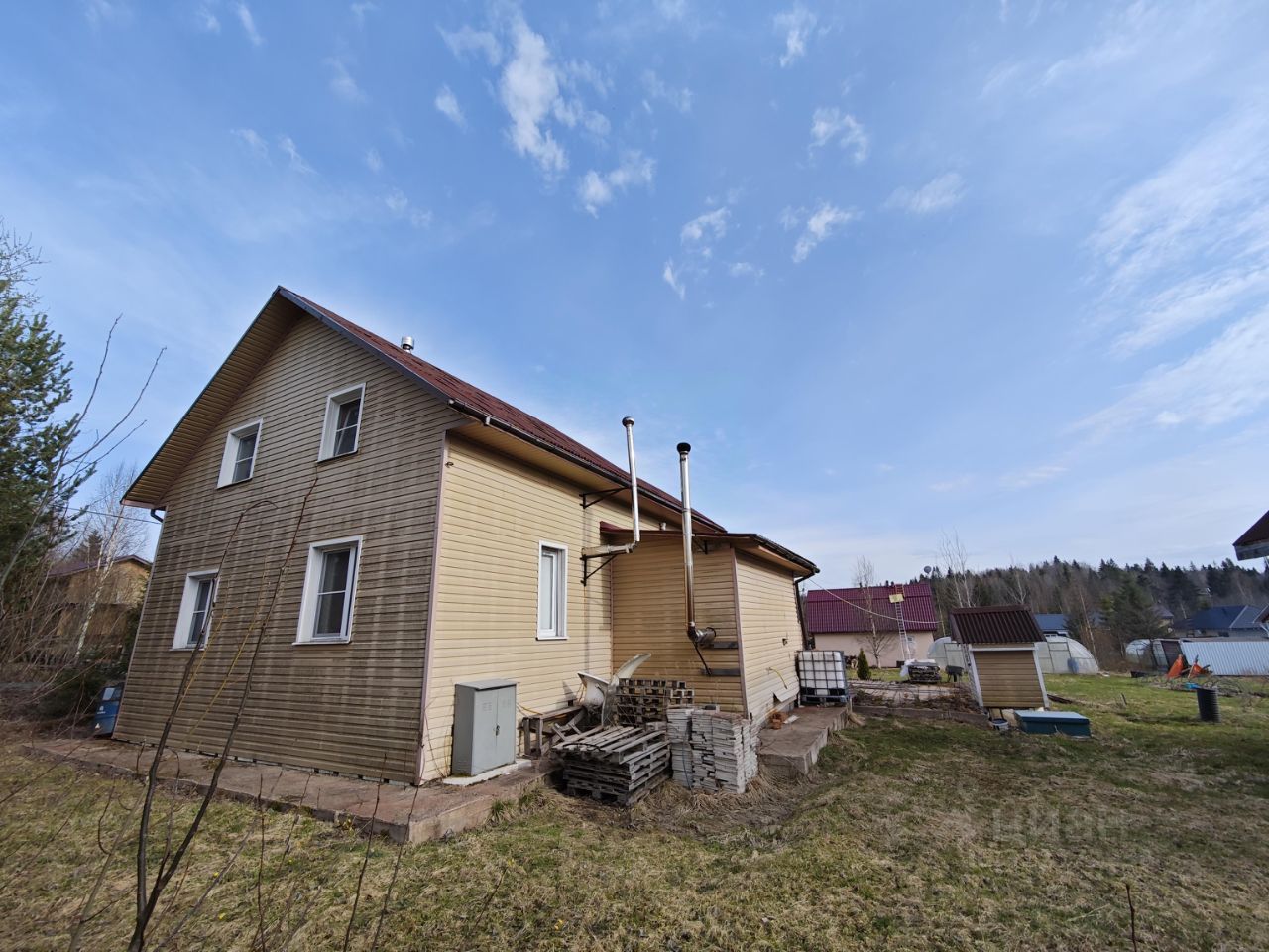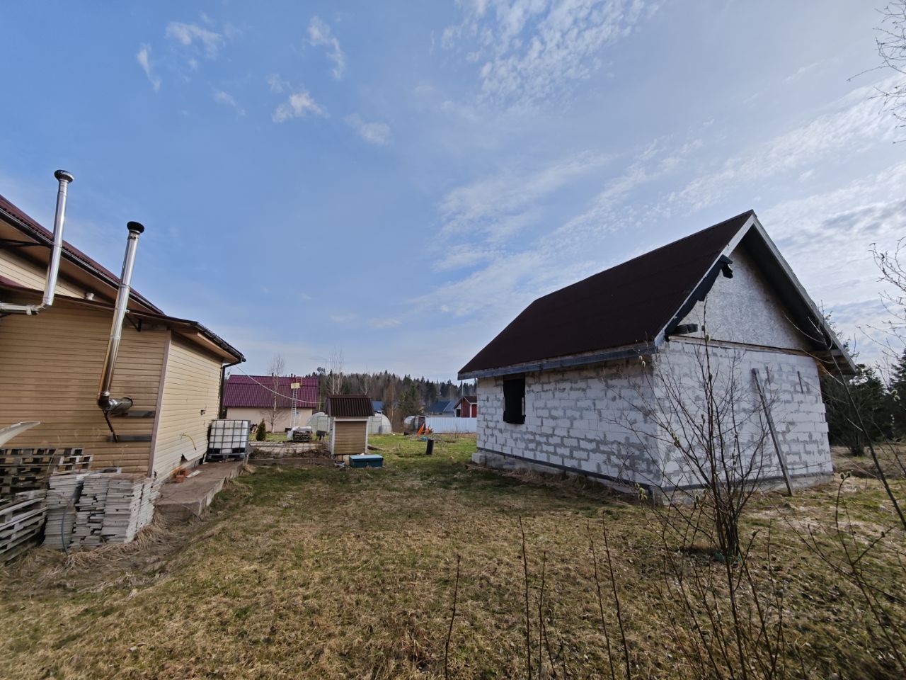 Есть вторая постройка на участке, (зарегистрированная, имеется разрешение на электричество), возможное использование - баня. Второе здание аналогично двухэтажное.