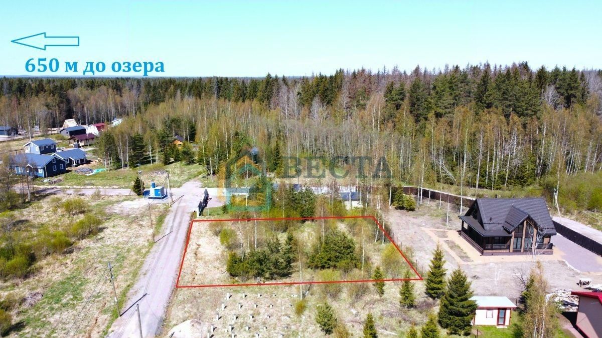 Земельный участок 6,5 соток под строительство дома, ровный, сухой, на возвышенности, произведено межевание. Участок расчищен, подготовлен под строительство. Место тихое и спокойное. Рядом лес и озера Большое Лебяжье и Малое Лебяжье. Номер участка в нумерации поселка 401. На участке есть зона ограничения, но дом зарегистрировать возможно.