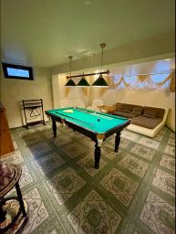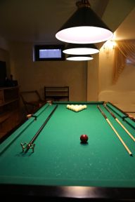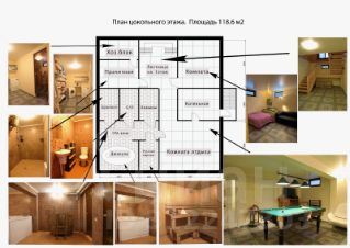 Цокольный с СПА-комплексом - сауна, хамам, джакузи на 2-4 человек, ледяное ведро, кедровая бочка, душевая зона. В зоне отдыха установлен русский бильярд, ТВ, караоке.