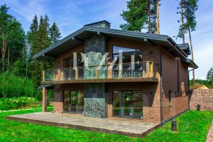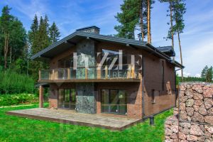 Внутренняя планировка: просторная кухня-гостиная 51м2 с камином и выходом на крытую террасу, 4 жилые комнаты, 4 санузла 12м2, 6,6м2, 8,6м2, 8,6м2, котельная, сауна. Высота потолков - 3,35м по всему дому, в кухне-гостиной 4,7м.