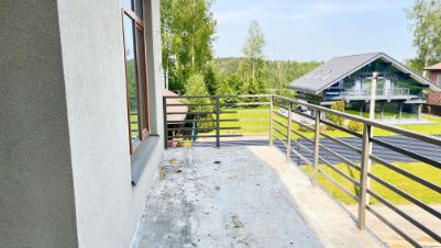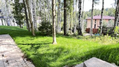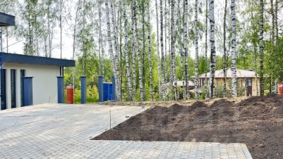 Коттедж построен на участке 16,5 соток с интересным естественным рельефом, вдоль дороги сохранена небольшая березовая рощица. У главного входа в коттедж участок вымощен брусчаткой, выполнены работы по укреплению почвенного покрова и озеленению.