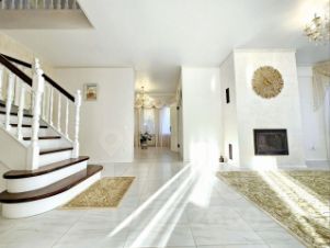Огромная кухня-гостиная с камином и площадью 60 м2 с выходом на террасу-32 м2.