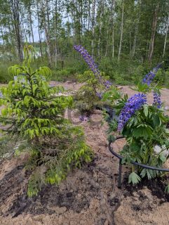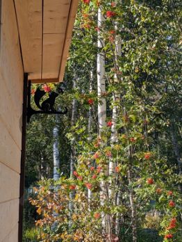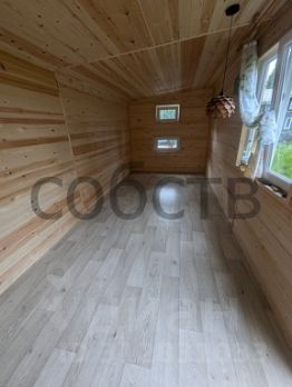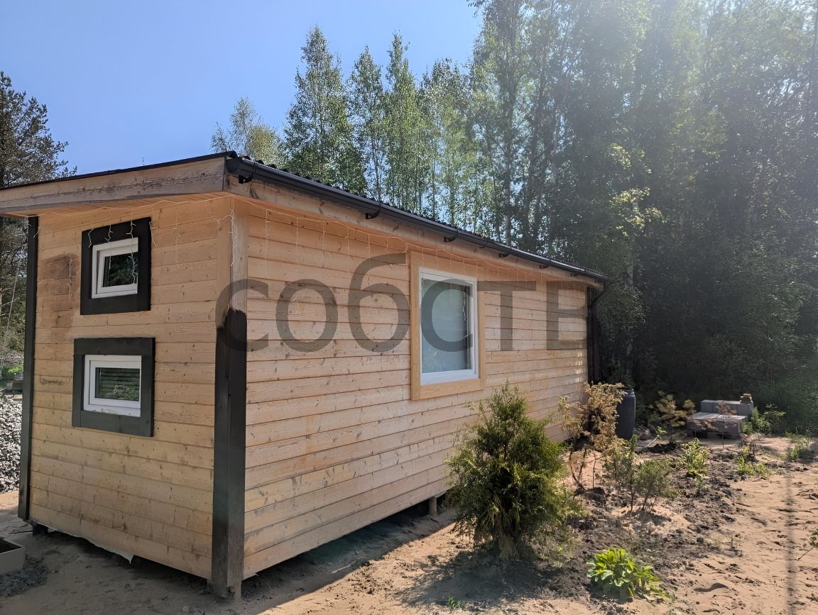 На участке построен дом-студия 17 м2 по каркасной технологии на заказ с соблюдением всех норм: несущий каркас обработан антисептиком, имеется влаго- и ветрозащита, под полом сетка-антигрызун. Толщина утепления стен, пола и крыши - 100 мм. Внутри отделка вагонкой, снаружи - имитация бруса. Снаружи также покрашен бесцветным маслом. Внутри разведена электрика, освещение (на фото этого ещё нет). Внутри есть помещение под санузел.