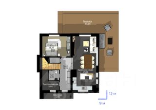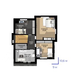 1 этаж: прихожая, кухня гостиная, комната, санузел, тех.помещение,