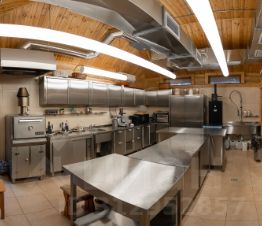 - отдельный зал для банкетов и кухня, оснащенная профессиональным ресторанным оборудованием;