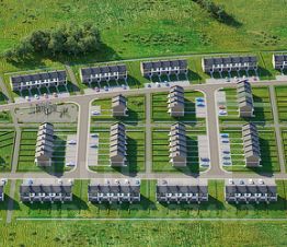 - парковочные зоны на 2 машино-места для каждой секции таунхаусов;